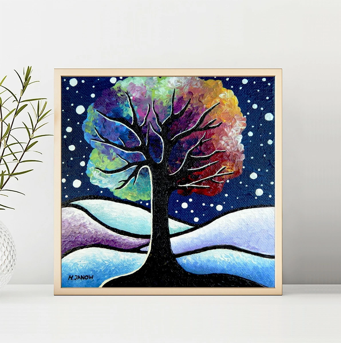 Rainbow Tree Wall Art Acrylic Pour Painting On Canvas Tree Of Life Fluid Art Ebay